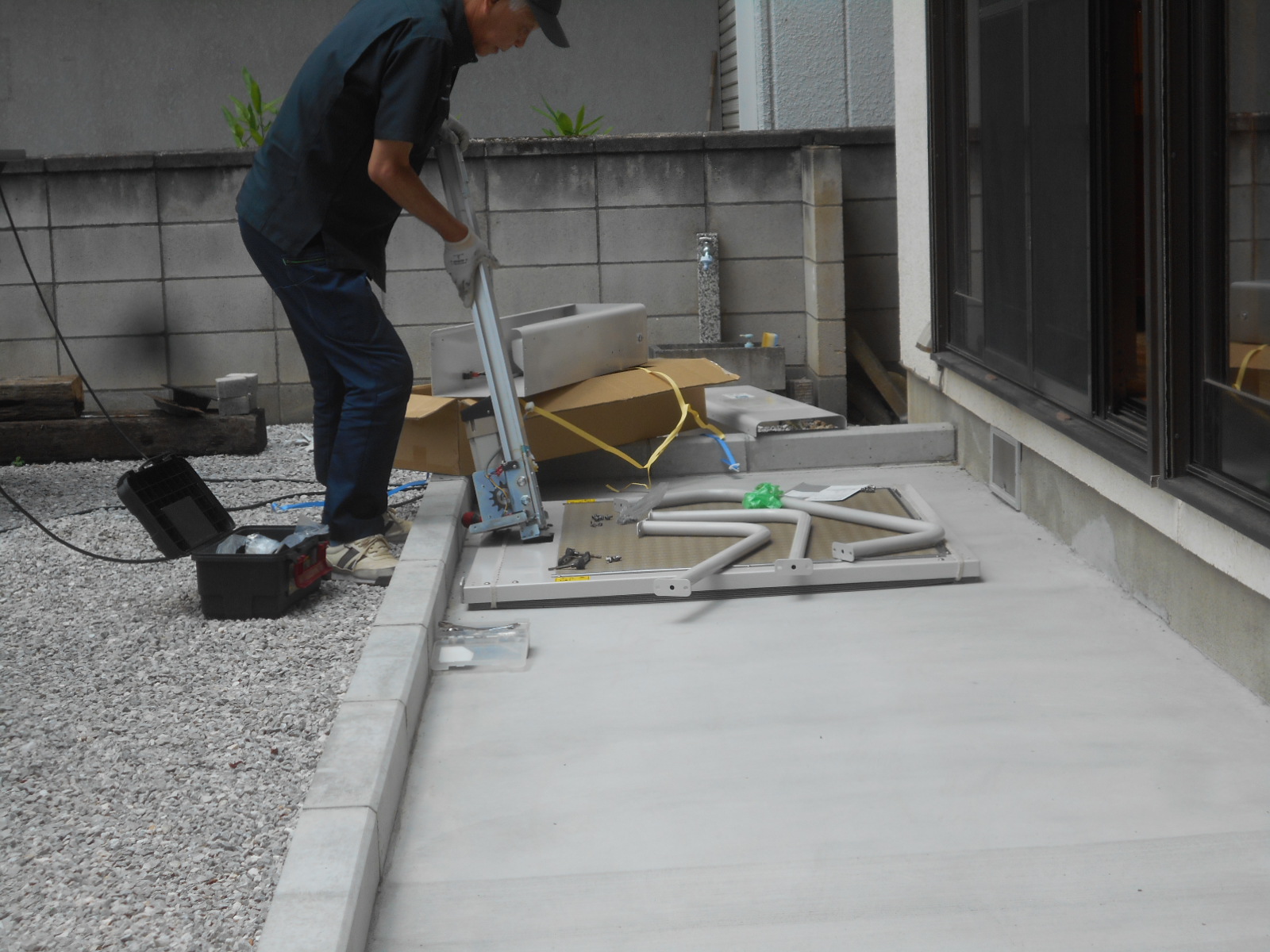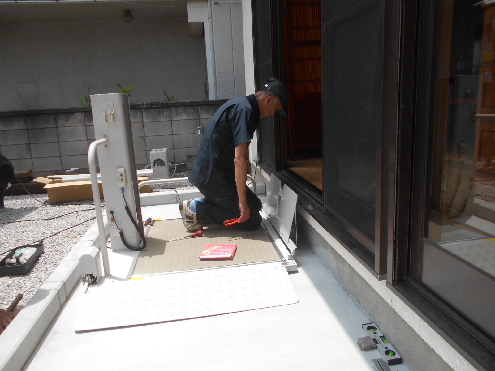 いよいよ据え置き型車椅子用段差解消機の設置となります。